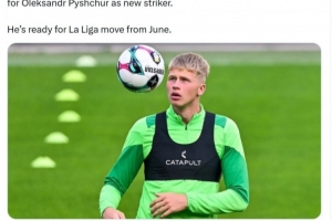 罗马诺:赫罗纳将以100万欧签下21岁乌克兰前锋皮什丘尔