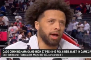 体育资讯4月23日讯 首轮系列赛G2,活塞98-83轻取魔术将大比分扳为1-1平。赛后坎宁安在场边接受了媒体采访,以下为采访全文。
