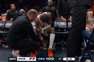 GIF-杰伦·格林手臂受伤 替补席表情痛苦