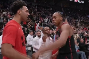 GIF-巴恩斯右侧突破急停虚晃压哨中投命中