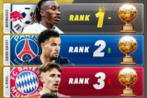 体育资讯04月24日讯 Score90给出了2026年金童奖4月份最新排名预测,迪奥曼德居首,埃梅里第二,卡尔第三。