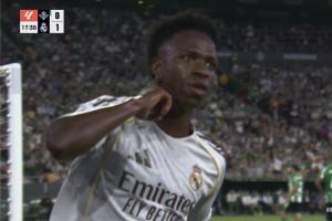 贝蒂斯球迷刻意针对维尼修斯,只要他一拿球就送上漫天嘘声,不断挑衅。而维尼修斯则抓住机会,补射破门,将比分改写。