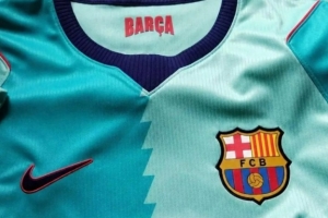 本周六,该网站公布了2026-27赛季的第三球衣。这款球衣将采用两种明显区分的青绿色调,并通过锯齿形线条分隔开来。领口为深蓝色,并在内部绣有红色的“Barça”字样。袖口则以红色镶边,而耐克的标志则为深蓝色并带有红色轮廓。
