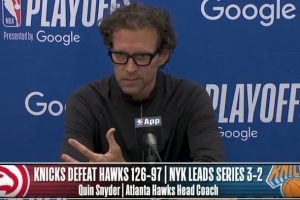 体育资讯4月29日讯 NBA季后赛,尼克斯126-97大胜老鹰,总比分3-2领先。斯奈德赛后接受了媒体采访,以下为采访全文。