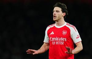 欧冠半决赛首回合,阿森纳1-1战平马竞,主裁判取消了埃泽的点球,赖斯赛后表示:“第二个埃泽的那次,那绝对是个点球,我不知道为什么没判。我觉得是球迷的抗议影响了裁判的判罚,但这不重要,我们继续备战下周的比赛,我们想在主场击败他们。”阿森纳主帅阿尔特塔也对这一判罚感到愤怒。