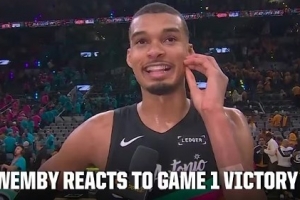 文班亚马:我听不太清……这是一次很棒的初体验。你知道,我们表现得很稳健,但正如预期的那样,工作还没有结束。